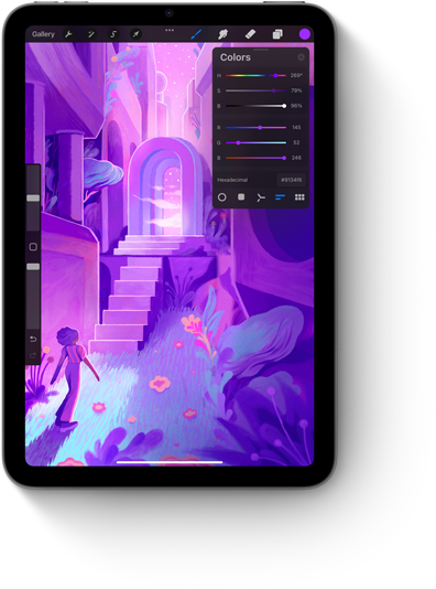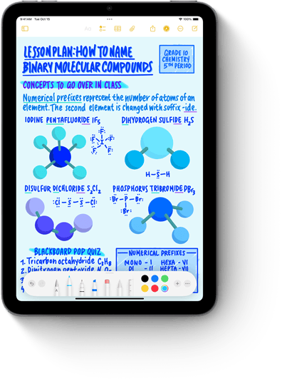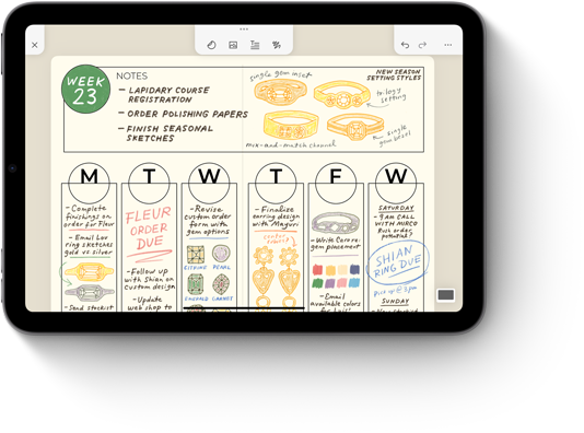 AppleĀ PencilĀ Pro can sense when you squeeze it and brings up a palette, so you can quickly switch tools, line weights, and colors.