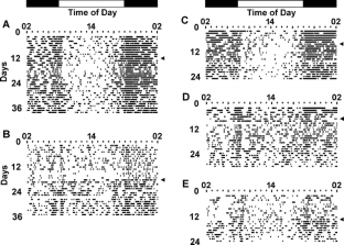 Steinlechner S, Stieglitz A, Ruf T (2002) Djungarian hamsters: a species with a labile circadian pacemaker? Arrhythmicity under a light–dark cycle induced by short light pulses. J Biol Rhythms 17:248–258